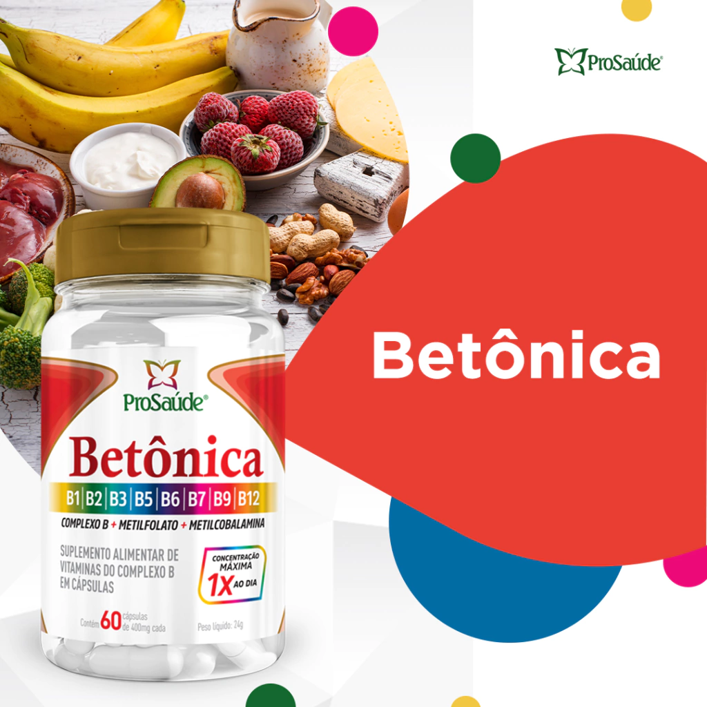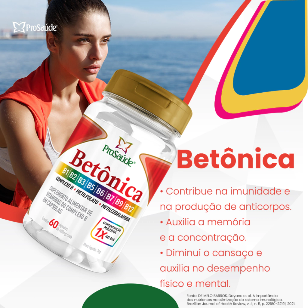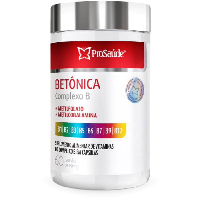 A Betônica Complexo B ProSaúde 400mg é um suplemento alimentar desenvolvido para quem busca mais energia, vitalidade e suporte à saúde mental, imunológica e metabólica.