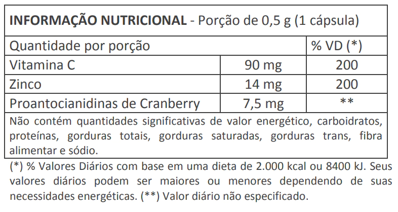 Ao contrário de soluções artificiais, este suplemento utiliza matérias-primas concentradas e naturais. O cranberry é reconhecido mundialmente pela ação preventiva contra infecções urinárias, e quando combinado com vitamina C e zinco, potencializa a saúde geral, resistência imunológica e equilíbrio do metabolismo.