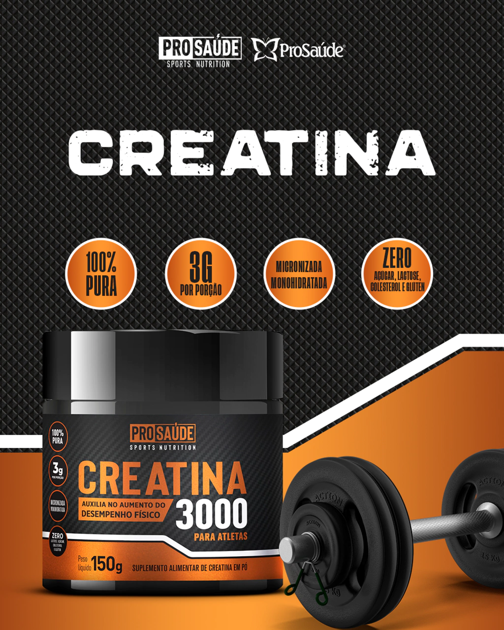 Invista no seu treino, supere seus limites e alcance seus objetivos. Compre agora a Creatina Pura 150g ProSaúde e sinta a diferença!