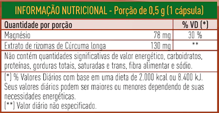 Cada porção oferece 130 mg de curcumina e 78 mg de magnésio, aliados a uma formulação balanceada para quem busca saúde, vitalidade e bem-estar.