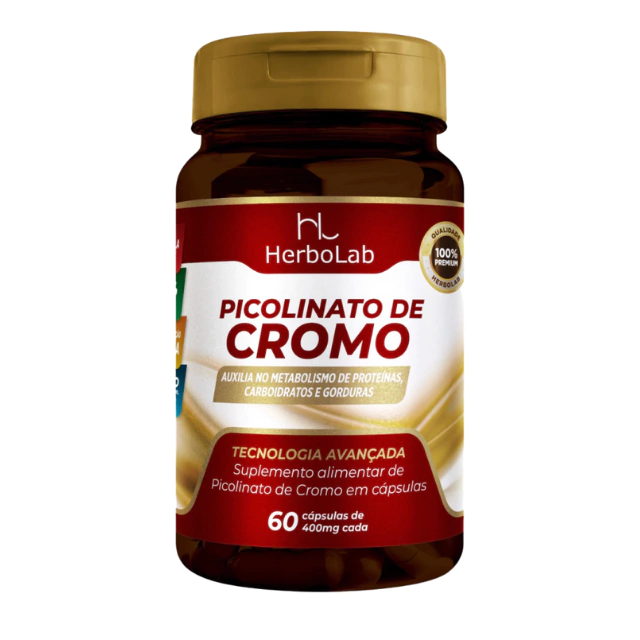 O Picolinato de Cromo Herbolab é um suplemento alimentar de alta qualidade que fornece 400mg de cromo por cápsula em sua forma orgânica e biodisponível.