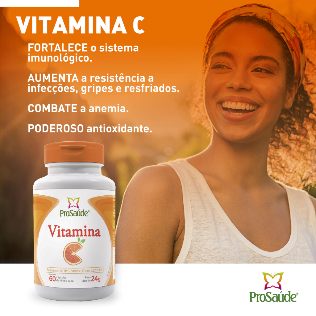 A Vitamina C auxilia na imunidade, melhora a absorção de ferro, contribui para o metabolismo energético e atua como antioxidante.